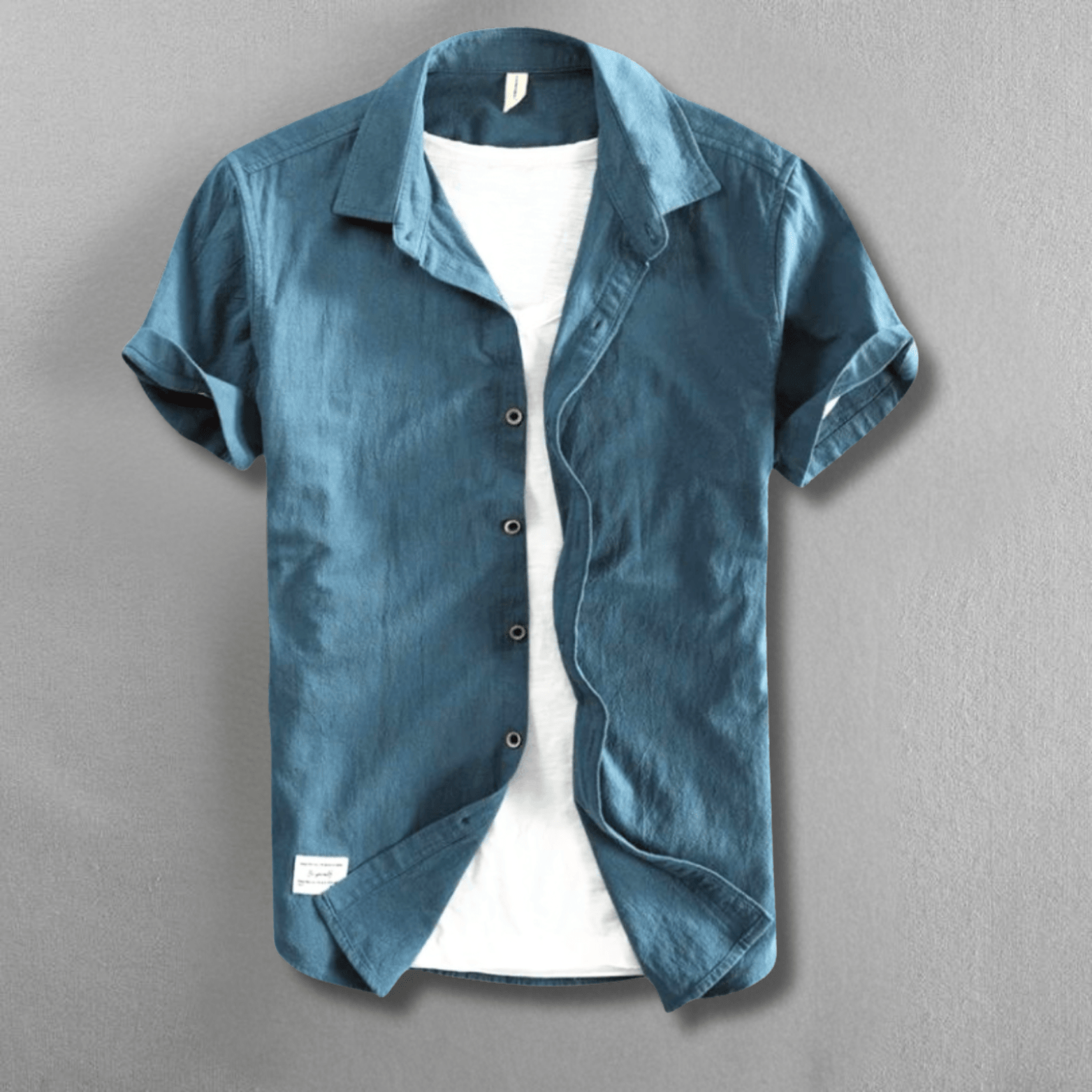 Designed with a breezy linen-blend fabric and a classic collar, it layers seamlessly over a soft inner tee for a relaxed yet put-together look. The slightly textured finish and contrasting buttons add depth and detail, making it your go-to for casual days that call for quiet sophistication.