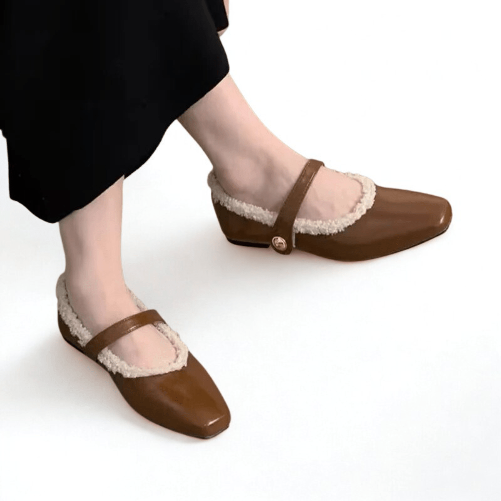 Elevate your everyday look with these luxurious leather flats, featuring a cozy fleece trim that adds comfort to every step.